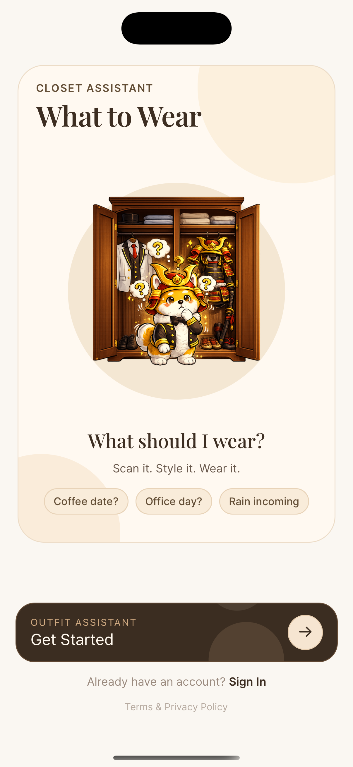 AI-powered wardrobe management. Capture, organize, and compose outfits from what you already own.